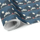 This cute blue-dominant wrapping paper design features pattern featuring a minimalist Santa Claus and one of his Elks riding on red carriage on a winter night in a snow-covered forest under moonlight. Great for Christmas gifts.