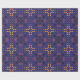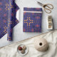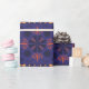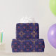 Seamless geometric pattern with orange and red floral motifs on a dark blue background, creating a vibrant, symmetrical, and elegant design.