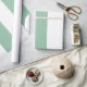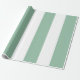 Papier d'emballage rayé brillant en vert et blanc. Des étiquettes cadeaux "joie" correspondant sont disponibles.