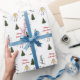 Papier Cadeau Skiers And Fir Trees Christmas Pattern With Text