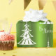 Ce papier d'emballage festif, vert et blanc de Noël présente un motif moderne d'arbres blancs de Noël, avec les mots 'Be Merry' éparpillés sur un arrière - plan vert clair et coloré.