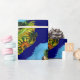 Paysage toscan, coloré, vibrant, beauté expressive de la flore d'été italienne et champs dans jaune vif orange, vert, marron, couleurs bleues, belles fleurs, cyprès et oliviers, ancienne ferme rustique sous le ciel bleu.Peinture acrylique sur toile.