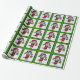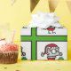Souris drôle de bande dessinée avec des bras et des jambes de bâton, nez rose, et des yeux écarquillés portant un costume de Père Noël, portant un cadeau dans le papier d'emballage vert et un arc. Éclairez vers le haut de vos cadeaux de Noël avec ces amusement et papier d'emballage unique. Art numérique original de bande dessinée par Taylor Addams.