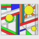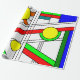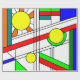 Ce papier d'emballage design moderne du milieu du siècle a un look en vitrail avec des lignes noires et des cercles remplis de couleurs primaires et secondaires.