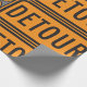 Un panneau de détour en noir sur un arrière - plan orange. Cette conception semble vraiment efficace sur ce papier d'enveloppement