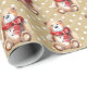 Ours en peluche marron d'aquarelle avec écharpe d'hiver rouge sur pois blanc motif et arrière - plan or