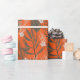 Ce motif de papier d'emballage à thème de Noël présente de la verdure de Noël avec de jolies fleurs blanches avec un arrière - plan personnalisé rouge-orange.