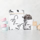 Joli papier d'emballage parisien ce design est illustré sur un arrière - plan blanc, il y a de l'écriture française et des dessins de serviettes Eiffel en noir. Customisez-vous aujourd'hui !