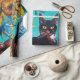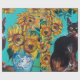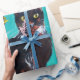 PAPIER CADEAU TOURNESOLS AVEC CHAT NOIR EN BLEU TURQUOISE