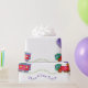 Tous à bord du train de Choo Choo fonctionnant en bas des voies. Le claquement de Clickety qu'il le déplace tellement rapidement a quitté la cambuse sur le dos. Une locomotive à vapeur rouge et verte illustrée colorée avec la vapeur pourpre se soulevant de elle est cheminée d'évacuation des fumées et une cambuse rouge, bleue et verte.