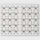 Ce rouleau de papier d'emballage est blanc avec des rangées de toiles d'araignées noires de forme triangulaire avec araignées noires de veuve avec des marquages en sablier rouge.