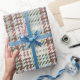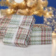 Inspired by the weave of a tweed, this wrapping is a unique but classic style that embraces the classic colors of Christmas with a touch of cool, winter tones.