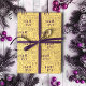 Cette enveloppe festive de cadeau de vacances jaune est couverte de voeux de paix, d'amour, et de joie dans la typographie violette jolis.