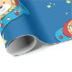 Un ours de nounours mignon dans un UFO de soucoupe volante bourdonne autour dans l'espace extra-atmosphérique. Papier d'emballage adorable pour votre petit astronaute !