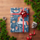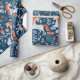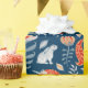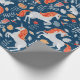 Papier Cadeau Unicornes, lapins, oiseaux, fleurs sur fond bleu