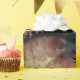 Un désert est représenté dans des bruns, des verts et des oranges uniques, aux formes de conifères. Une lune orange vif dans un ciel noir éclaire les arbres artistiques, l'aigle, le lapin et l'écureuil, le tout formé par des rangées de conifères.