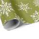 Un emballage cadeau élégant pour les vacances et les événements d'hiver. Des flocons de neige blancs et gris clair de tailles légèrement différentes sur un arrière - plan vert olive. Le design est disponible dans une collection couronnée de couleurs de vacances modernes. Contactez-nous pour toute personnalisation. Joyeuses vacances !