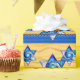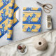 Le papier brillant magnifique d'emballage cadeau comporte la peinture numérique originale de Jewbilee d'une étoile de David inspirée par art déco en verre souillé aux nuances variables du bleu royal flottant au-dessus d'un arrière - plan posé par 3 des vagues jaune-foncé, de l'argent sur la clé grecque noire, et des rayures horizontales de bleu royal.