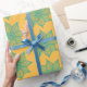 Papier Cadeau Vert de mer clair sur Fleurs Sketchy Jaunes