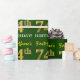Ce design papier d’emballage comporte un message comme "74e anniversaire de prénom !", avec le "74e" ayant une apparence de couleur fausse/imitation or. Le nom peut être personnalisé, et l'arrière - plan est vert couleur. Il pourrait peut-être être utilisé pour envelopper les cadeaux donnés pour le soixante-quatorzième anniversaire de quelqu’un. [~Z0000179]
