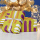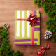 Papier d'emballage violet, orange et vert pour les anniversaires.