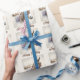 Papier d'emballage d'anniversaire mignon avec un âne d'aquarelle. Pour les personnes nées en hiver. Customisez ce produit en ajoutant les informations de votre partie.