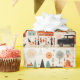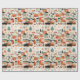 Joli papier d'emballage de style mid century modern montrant des magasins de village, une bibliothèque, un magasin général, une école, des maisons et des voitures. Les gens se promènent en ville par une journée d'hiver.