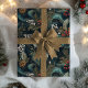Ce luxueux papier d'emballage est composé d'un arrière - plan sombre et maussade avec un motif tourbillonnant et abstrait dans les tons bleu turquoise et profond, rappelant les mers orageuses ou les nébuleuses célestes. Tout au long de la conception sont dispersés des grappes d'éléments festifs, y compris des sprigs de houx avec des baies rouges profondes, des pinecones et des baies blanches ou fleurs délicates. Des touches de parties scintillant dorée attirent la lumière, ajoutant une touche d'élégance et d'éclat. L'ensemble est sophistiqué et enchanteur, parfait pour un cadeau de vacances avec une touche d'allure mystérieuse.