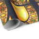 Une belle porte en vitrail victorien d'époque avec une lumière chaude d'ambre, rouge, vert et noir.