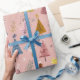 The gentle pink background brings a modern pastel twist to classic holiday wrapping, while the playful tree illustrations offer a cozy, retro-inspired charm. Perfect for design lovers and those who adore a cute, Scandinavian-style Christmas aesthetic.