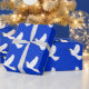 Une belle image d'une colombe blanche volant avec une pointe de verdure sur un arrière - plan bleu profond. Ce serait parfait pour envelopper vos cadeaux de Noël pour la famille et les amis.