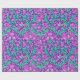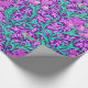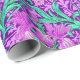 Papier à envelopper dans un William Morris, Art Nouveau, imprimé textile d'iris et de feuilles, numériquement rehaussé et coloré, dans une orchidée molle et turquoise, sur un arrière - plan violet améthyste profond