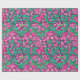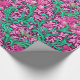 Papier à envelopper dans un William Morris, Art Nouveau, imprimé textile d'iris et de feuilles, numériquement rehaussé et coloré, en fuchsia et rose glace, vert paon et blanc, sur un vin profond violet arrière - plan