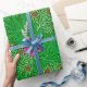 Papier enveloppé dans un vintage William Morris, Art Nouveau, imprimé damassé marigold de feuilles et de fleurs, numériquement rehaussé et coloré, dans émeraude profonde et vert citron, accentué de rose fuchsia et orange de corail, sur un arrière - plan vert foncé