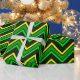 Un motif en zigzag chevron audacieux et dynamique, aux tonalités vertes, noires et jaunes frappantes. Ce design à contraste élevé ajoute une touche moderne et énergique à votre cadeau.