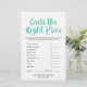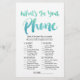 Ce jeu de calligraphie aquarelle "devinez le bon prix" est parfait pour un baby shower d'été pour garçons. Le devant de la carte de jeu comporte "devinez le bon prix", et le dos de la carte contient "ce qui est dans votre téléphone". Le design amusant et énergique est composé d'une police de script d'aquarelle vert turquoise et bleu aqua ombre. Personnalisez l'avant de la carte avec le nom de la mère à être et la date du baby shower. Vous pouvez personnaliser les questions du jeu en cliquant sur le bouton "personnaliser".