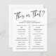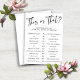 PAPIER Ceci ou Celui qui connaît le jeu de Fête des mariées. Ajoutez une touche d'amusement et d'excitation à votre douche nuptiale avec ce jeu "Qui connaît la meilleure mariée"! Testez la connaissance de la future mariée de vos invités avec 12 questions de style "ceci ou cela", couvrant tout, des préférences mariages aux rêves de lune de miel. Parfait pour des rencontres animées et la création de souvenirs durables! Entièrement personnalisable - vous pouvez modifier n'importe quelle question pour convenir à votre événement! Veuillez nous contacter à cedarandstring@gmail.com si vous avez besoin d'aide pour la conception ou les produits correspondants. 🌟 Si vous cherchez une version de cette liste téléchargée instantanément (imprimer à la maison), veuillez aller ici : https://www.zazzle.com/this_or_that_who_knows_the_bridal_shower_game_invitation-256401720375548604