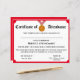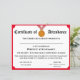 Le design présente une garniture rouge avec l'image d'un ruban de médaille d'or au centre supérieur. Le titre s'affiche en police traditionnelle pour un certificat. Tout le texte est personnalisable. La couleur arrière correspond à celle de la garniture avant. Les couleurs disponibles sont le rouge, l'or, le vert et le bleu.