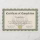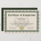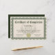 Certificat d'achèvement pour tout cours, école ou programme. Conception personnalisée dans un élégant vert et bronzé avec un faux sceau d'or. Montrez votre fierté et votre enthousiasme pour les efforts de vos étudiants et de votre personnel avec ce certificat personnalisé et personnalisé. Ajoutez votre propre texte en ligne et commandez des certificats personnalisés pour votre cérémonie. Jolie rosette vintage bordure d'art sculpté au style classique.