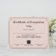 Papier Certificat de Récompense de Complétion Rose Pâle