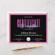 Présentez notre Modèle de certificat d'achèvement - un design polyvalent et modifiable, parfait pour des cours tels que les cours de Lash, de Nail, de Fabrication de perruques, de Maquillage et de Cheveux. Avec des lettres néo frappantes sur un arrière - plan noir et rose élégant, ce modèle vous permet d'ajouter facilement votre logo et le nom du cours pour une touche personnalisée. Célébrez les réalisations de vos élèves dans le style