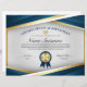Ce certificat professionnel de la conception de récompense de succès présente des couleurs bleu, or et blanc, arrière - plan gris avec des lignes blanches détaillées et une bordure d'or. Comprend deux médailles.