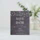 Réservez la date! Annoncez votre mariage à vos amis et à votre famille avec ces lampadaires rustiques et des lampes à cordes enregistrez les cartes de date. Personnalisez avec les noms, la date du mariage, l'emplacement. Ces lumières à cordes de tableau unique mariage enregistrer les cartes fera une impression durable, vos invités s'assureront de sauver la date! DROIT D'AUTEUR © 2020 Judy Burrows, Black Dog Art - Tous droits réservés. Budget Ardoise Chaîne Lights Mariage Enregistrer La Date
