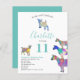 Une collection d'illustrations colorées de chèvre d'aquarelle mignonne en rose vif, violet, bleu, orange, jaune et aqua. Une invitation pour la fête du 11e anniversaire d'animaux de ferme mignons avec des chèvres et des chèvres debout sur des chèvres. Cette invitation amusante à fêter un anniversaire à petit budget est facile à personnaliser pour créer une invitation unique à fêter qui conviendra aux enfants et aux amateurs de chèvres adultes. Chèvre psychédélique colorée illustrations originales de l'artiste Catherine Sweetman