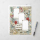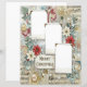This design features a lush, vintage-inspired collage background of muted blues, creams, and holiday greens, overlaid with sheet music and delicate distressed textures. The focal point is a beautiful arrangement of poinsettias (in classic red and creamy white), holly berries, snow-dusted eucalyptus-style foliage, and sparkling ornaments.
