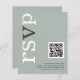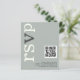 Une alternative de BUDGET rapport qualité-prix sur un format plus petit 4,5 x 5,6” semi-brillant 110lbs, qui est d'une épaisseur similaire à une carte postale (mais ne convient pas pour une utilisation en tant que carte postale). VEUILLEZ NOTER qu'il y en a UN par feuille. Code QR Sage Ivory Mariage Réponse en ligne. Ajoutez votre code QR à votre site web de mariage pour que vos invités puissent répondre en ligne. Un design typographique moderne avec RSVP en grandes lettres en ivoire avec le "v" en gris, pivoté et sur le côté gauche sur un fond de vert sauge clair. Les couleurs du fond et du texte peuvent être modifiées si vous le souhaitez via Personnaliser davantage.
