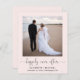 Étage rose clair abordable ou petite faire-part mariage et accueil. L'avant présente votre photo, "joyeusement toujours après" dans un script de calligraphie élégant avec des swashes et vos prénoms, date mariage et emplacement. Au verso, customisez votre faire-part mariage et votre invitation à la réception ou à la fête, entrez l'adresse de votre site mariage pour créer un code QR pour que les invités puissent scanner pour voir vos photos mariages, tous les détails et RSVP en ligne et signer vos noms mariés dans un script signature.