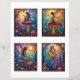 Un design de papier pour scrapbook vibrant et fantaisiste mettant en vedette une collection de scènes de fées enchantées. Chaque fée est gracieusement perchée sur un champignon aux couleurs vives, créant une palette forestière animée qui se sent à la fois magique et invitante. Leurs ailes scintillent de teintes radieuses, captant des nuances de roses iridescents, de bleus et de verts comme si elles étaient éclairées par une douce lumière de forêt.
