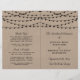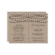Simple mais élégant, les lampes à cordes de la collection rustique Kraft mariage est un design époustouflant avec de belles lumières à cordes blanches suspendues sur un arrière - plan à effet Kraft, qui est parfait pour toute célébration mariage rustique. Ces programmes peuvent être personnalisés pour votre occasion spéciale et rendraient la commande parfaite de service pour votre mariage, douche nuptiale, fête de fiançailles, fête d'anniversaire et bien d'autres occasions spéciales. Ajoutez votre libellé personnalisé à cette conception à l'aide des cases "Modifier ce modèle de conception" situées à droite de l'élément, ou cliquez sur le bouton bleu "Customiser" pour arranger le texte, modifier les polices et les couleurs et ajouter des informations ou des images supplémentaires à cette conception. AFFICHER LES ÉLÉMENTS CORRESPONDANTS POUR CETTE COLLECTION