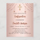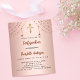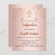 Un arrière - plan rose à gradient or. Décoré d'étoiles dorées roses et d'une croix dorée. Personnalisez et ajoutez un nom et des détails. Le nom est écrit avec un script de style écrit à la main. 1 feuille = 1 invite imprimé bord à bord.